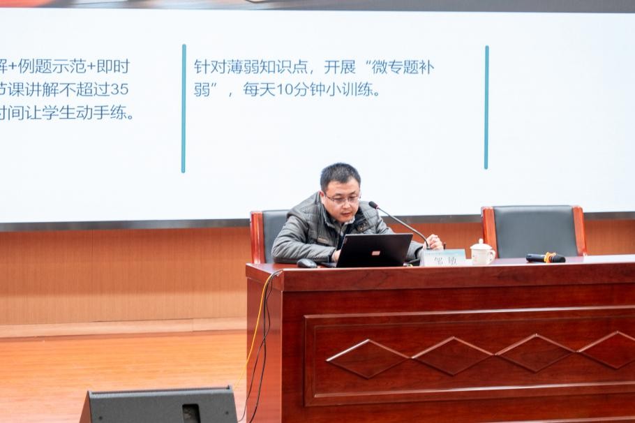 常州市第一中学都承峰老师、溧阳市光华高级中学高欢杰老师和常州市金坛区金沙高级中学邹敏老师分享了各自学校的备课组计划和具体操作方法,都提出了要精准教学,注重基础知识,讲练结合,提高效率,做好分层教学和分层作业。