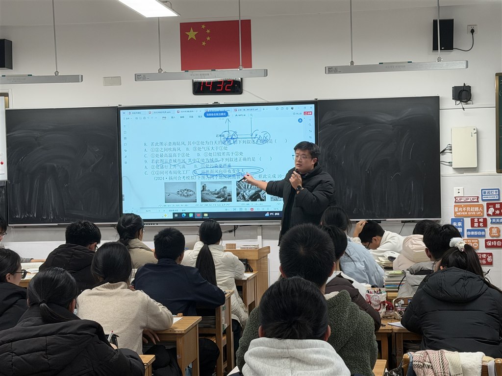 2025年12月31日下午,高二地理组孙久星老师带领高二(8)班同学在8号楼103教室开设《学测复习》公开课。组内老师积极参与听课,并于课后进行了教学研讨。