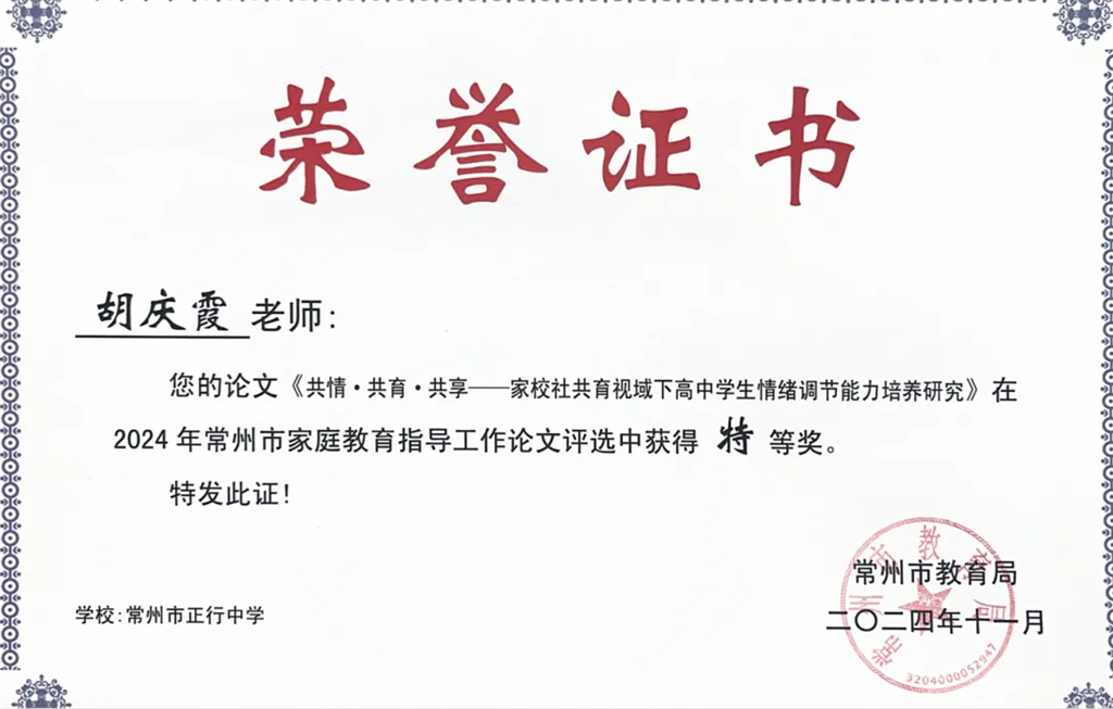 匠心琢杏坛,硕果慰耕耘。在全体正行师生的共同努力下,在所有家长朋友的共同支持下,我校被授予“常州市五一劳动奖状”。这一崇高荣誉沉甸甸,既是对我校坚持社会主义办学方向、全面落实立德树人根本任务、推动教育高质量发展的充分肯定,也是对全体正行人团结拼搏、锐意进取精神风貌的最佳褒扬。